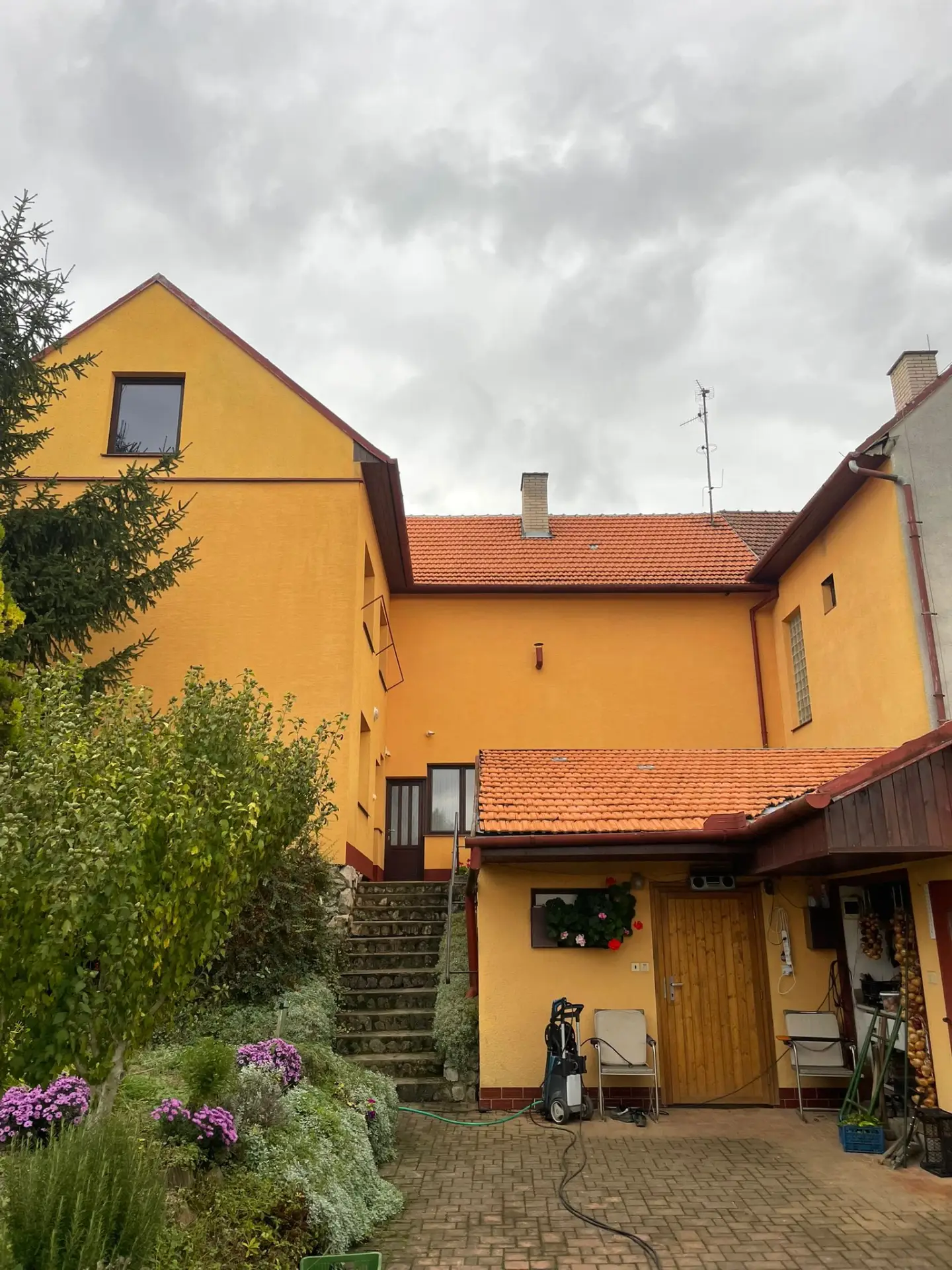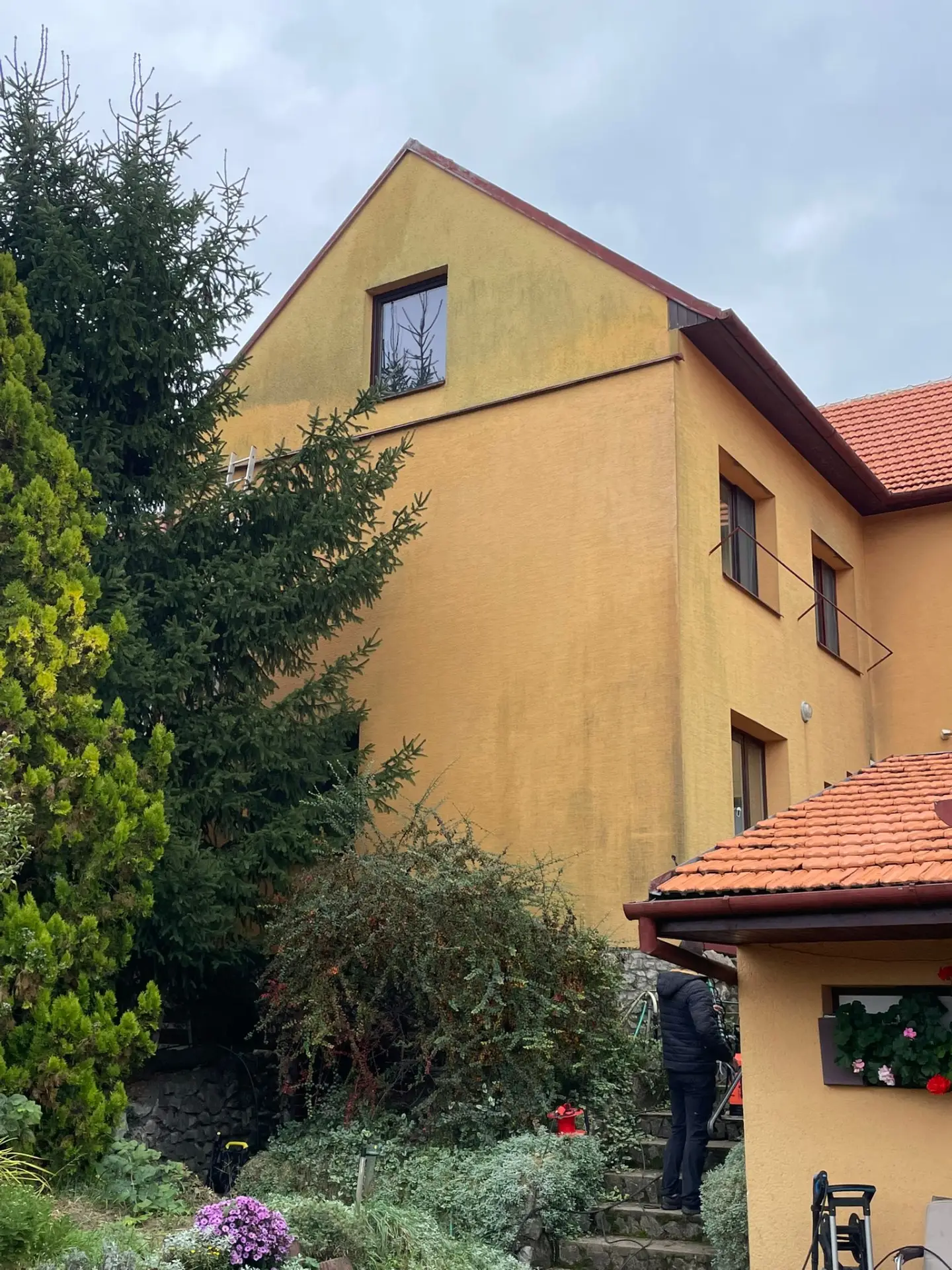 Na této zakázce jsme prováděli kompletní vysokotlaké čištění fasády rodinného domu, která byla po několika letech vystavena prachu a nárůstu řas především na severní straně objektu. Cílem bylo obnovit původní vzhled omítky, odstranit organické nečistoty a připravit povrch na ošetření impregnačním nátěrem (pro delší odolnost proti vodě, prachu a mechu).